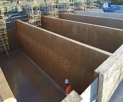 Полісечовинні покриття ідеально підходять для захисту цих об'єктів, оскільки вони надзвичайно стійкі до стирання, володіють високою хімічною і корозійною стійкістю, а також відмінно працюють при постійному зануренні у воду. Найкраще в полісечовині те, що вона однаково добре справляється з великими стінами і складними деталями навколо перегородок, а також надзвичайно стійка до стирання.