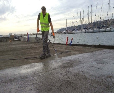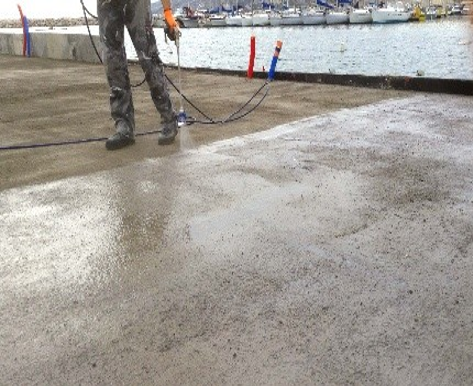 Порт розташований на узбережжі на березі моря. Адміністрація порту прагнула отримати більш якісну бетонну поверхню на причальних палубах з меншим розтріскуванням пластику, стійку до постійно присутнього сольового впливу моря і повітря, і була розчарована нездатністю традиційних покриттів і мембранних продуктів вирішити ці проблеми.