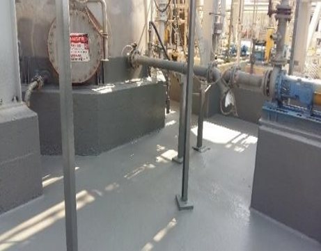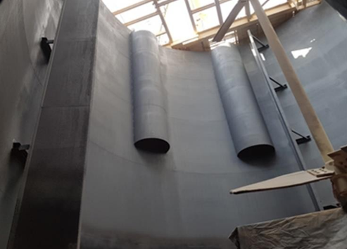 Незважаючи на те, що для системи полісечовини це не було потрібно, стіни були заґрунтовані Epimax 225 для забезпечення однорідної основи. Незважаючи на використання Epimax 225, резервуари були заґрунтовані ShieldPrime UNI для мінімізації точкових отворів. У результаті, незважаючи на відносно нову і пористу бетонну конструкцію, кількість отворів було зведено до мінімуму.