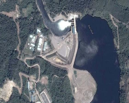 Гребля була збудована у 2012-2013 роках як гідроелектрична гребля, що мала забезпечувати 38 мегават електроенергії. Перед тим, як було завершено і заповнено основну стіну, в корінній породі поруч із річкою було побудовано підземне приміщення для заводу. Воно було побудовано нижче рівня землі зі стінами завтовшки два метри на початку 2013 року. Це приміщення в кінцевому підсумку опиниться під 22-метровим водоскидом, який заповнить греблю на початку 2014 року. Після завершення будівництва було виявлено, що з річки в заводське приміщення просочується вода. Це викликало серйозну заклопотаність, оскільки над приміщенням мало бути заповнено 22 метри води.
